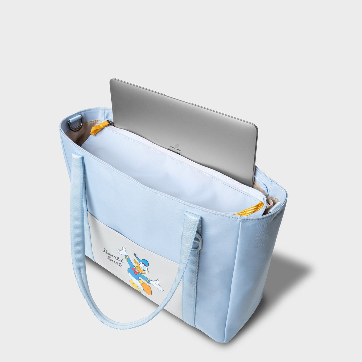 Secure, zippered top for peace of mind during your commute, or wide open for quick access at work.